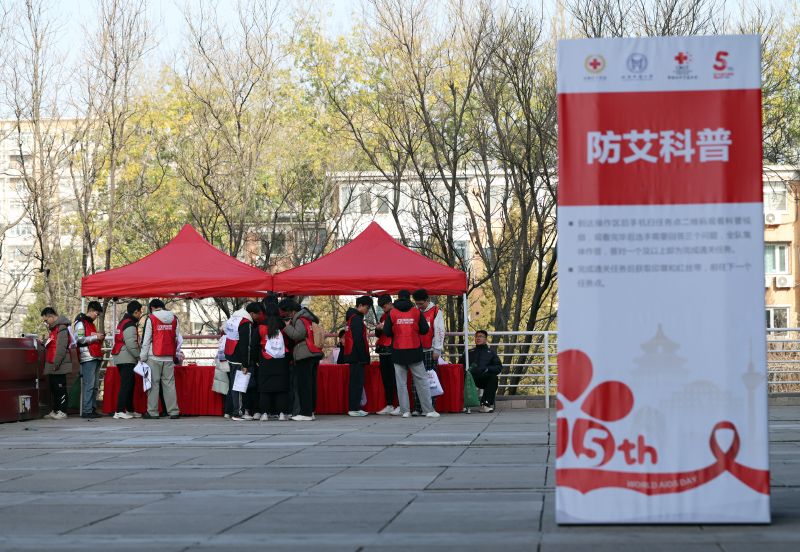 11月29日,北京科技大学校园内开展“世界艾滋病日”主题宣传暨“红气球校园挑战赛”活动,并组织无偿献血活动。