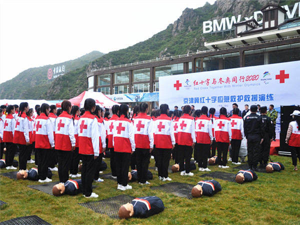 中国红十字会博爱基金、总会训练中心,河北省冬奥办、省应急管理厅、省卫健委、省体育局等部门和张家口市政府有关负责人,北京、天津、河北三地红十字救护救援志愿者及红十字会工作人员等130余人参加活动。