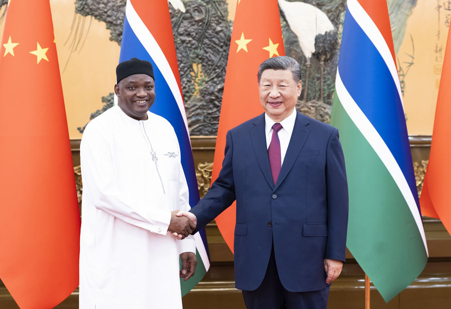 9月6日下午,国家主席习近平在北京人民大会堂会见来华出席中非合作论坛北京峰会的冈比亚总统巴罗。新华社记者 黄敬文 摄