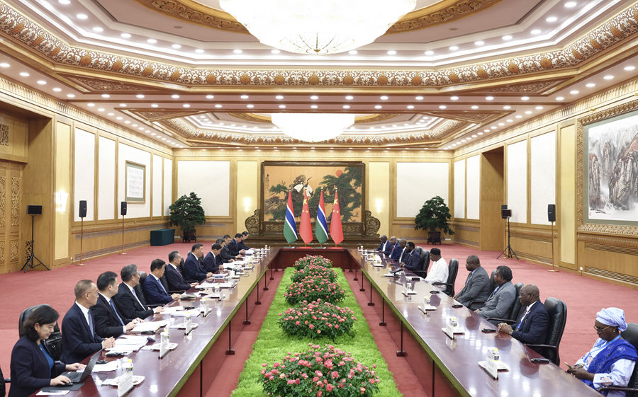 新华社北京9月6日电(记者温馨、袁睿)9月6日下午,国家主席习近平在北京人民大会堂会见来华出席中非合作论坛北京峰会的冈比亚总统巴罗。两国元首宣布,将中冈关系提升为战略伙伴关系。